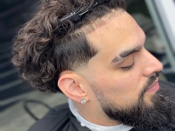 Precision haircut paired with detailed beard grooming, shaping, and lineup for a clean, sharp, well-finished look.